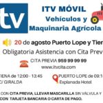 📢📢 ITV móvil, el próximo día 21 de septiembre para vehículos y maquinaria agrícola en Puerto Lope.🚜🚜